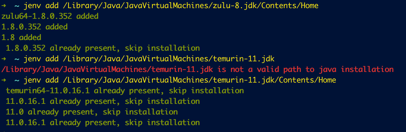 jenv add /Library/Java/JavaVirtualMachines/temurin-11.jdk/Contents/Home